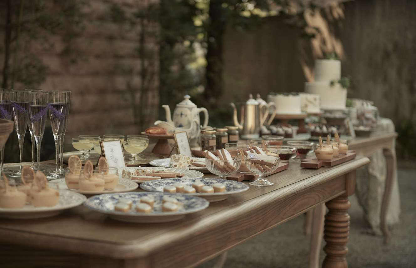 ふたりの想いを表現したオリジナルデザインのウェディングケーキや、ガーデンに並ぶ色とりどりのデザートブッフェ。ル・シャン・ド・ククの結婚式を華やかに彩る甘いおもてなし。お子さまからご年配の方までたのしんでいただけるよう、専属パティシエが真心をこめておつくりします。