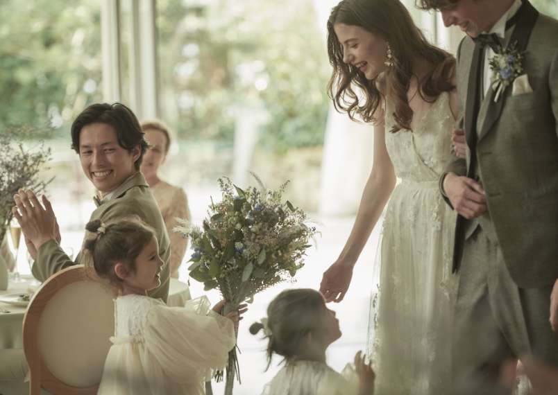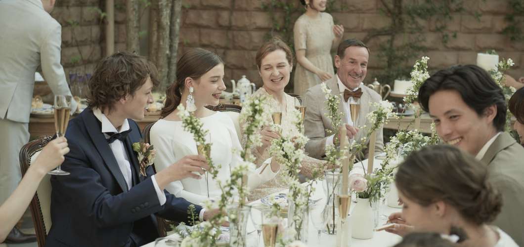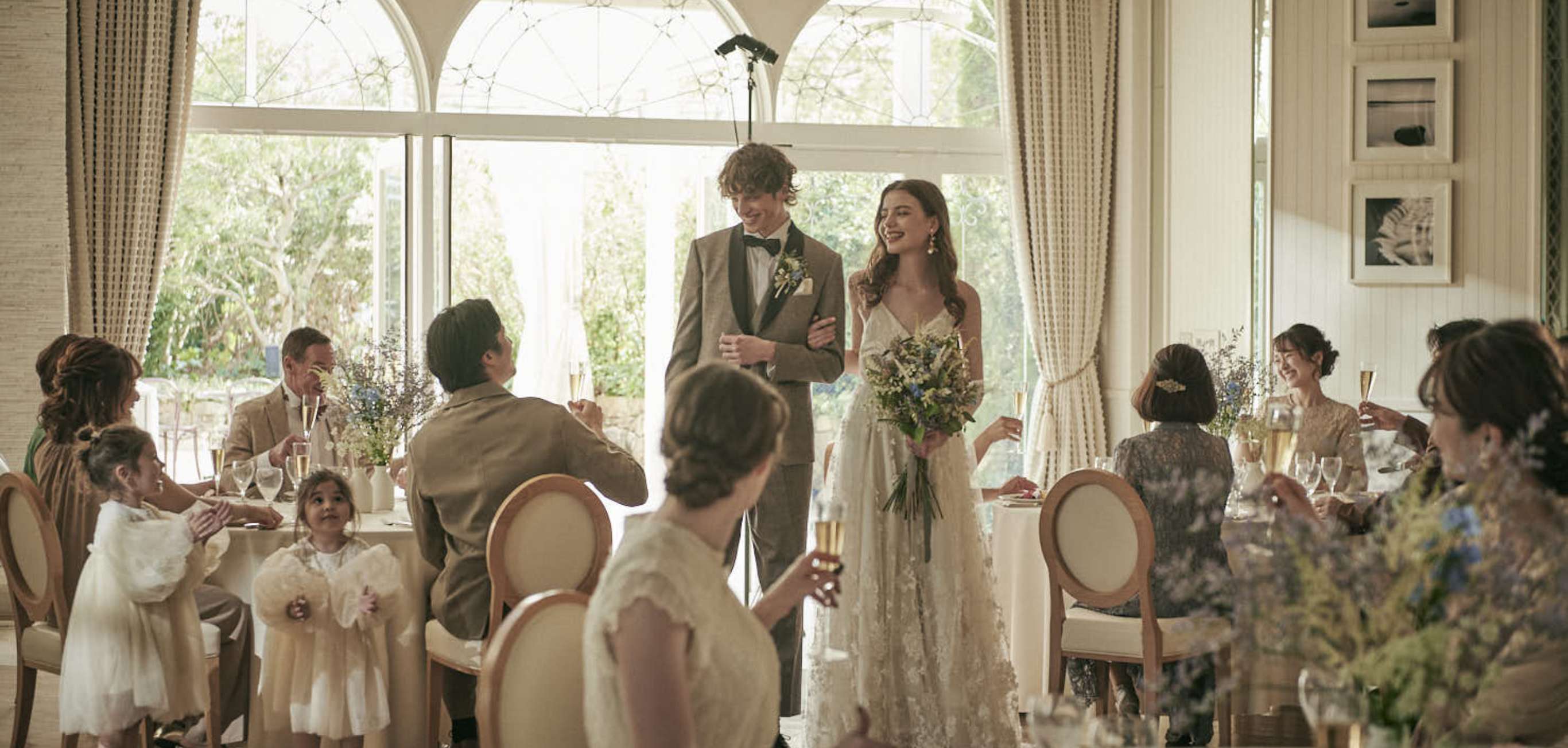 明るい雰囲気の「フィラージュ」では、ゲスト全員がとびきりの笑顔になれるパーティを。メインをソファ席にして広々とした空間でもゲストと近い距離で一緒に過ごしたり、会場とつながるガーデンでオープンカー演出をしたりと、たのしい時間を彩ります。