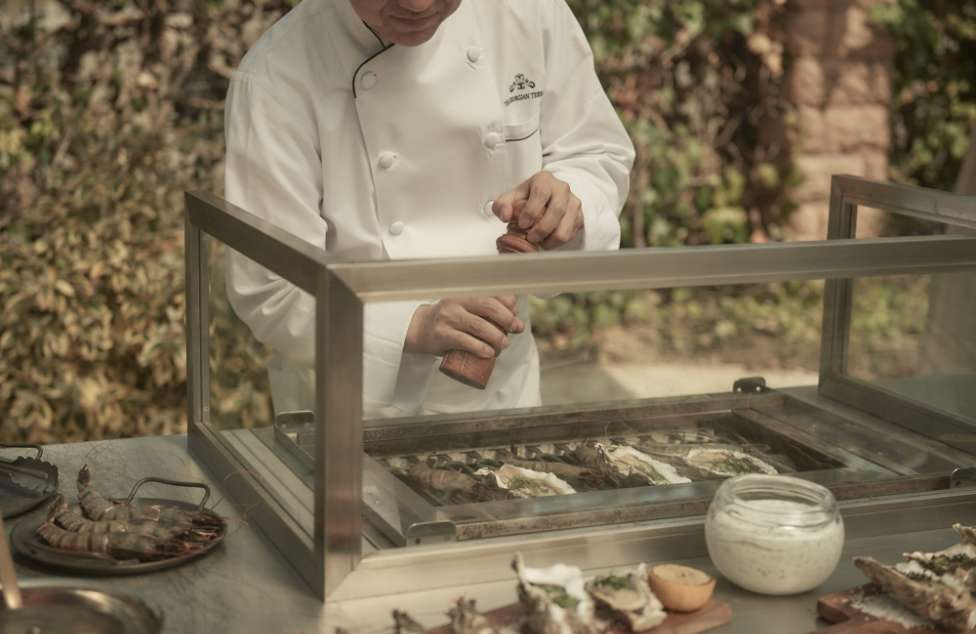 パーティ前半は会場内でゆっくりと料理を味わい、後半には開放的なガーデンへ。青空のもと、色とりどりの新鮮な食材を使ってシェフが腕をふるい、できたての美味しさをお届けするマルシェ・ダイニングをおたのしみください。プロヴァンスの庭を備えたル・シャン・ド・ククならではの特別なおもてなしです。