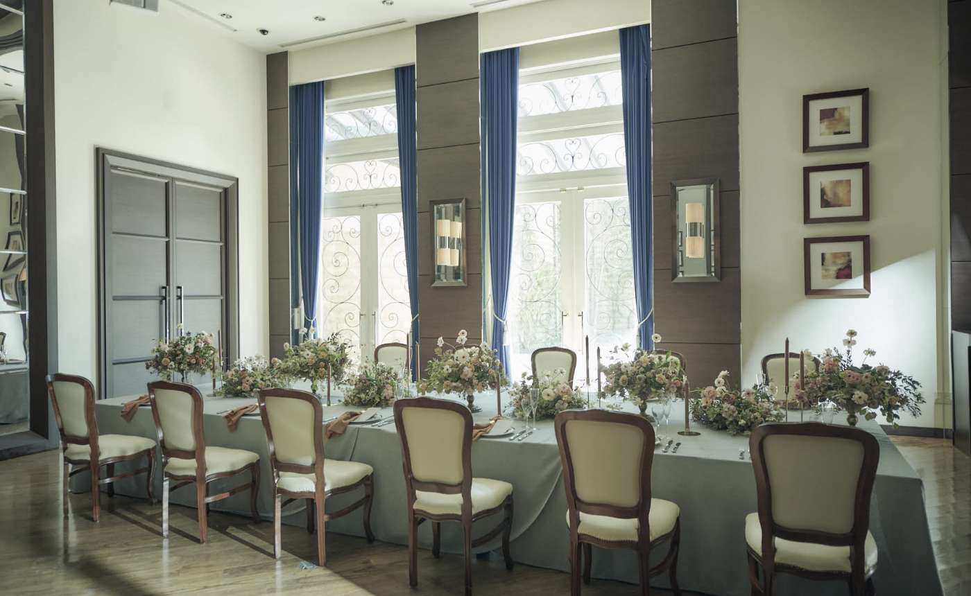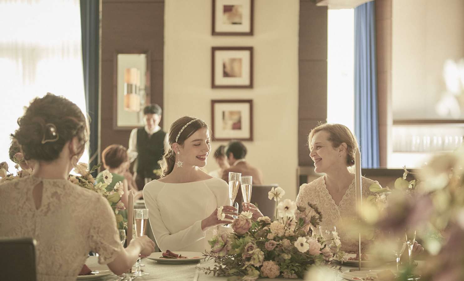 よりアットホームな少人数での会食もゆったりと。披露宴会場のテーブルセッティングは、ゲストの人数にあわせて自由にアレンジできます。広い空間を家族や親族だけで貸切って長テーブルを一緒に囲むスタイルなど、プライベート感あふれる贅沢なひとときをどうぞ。