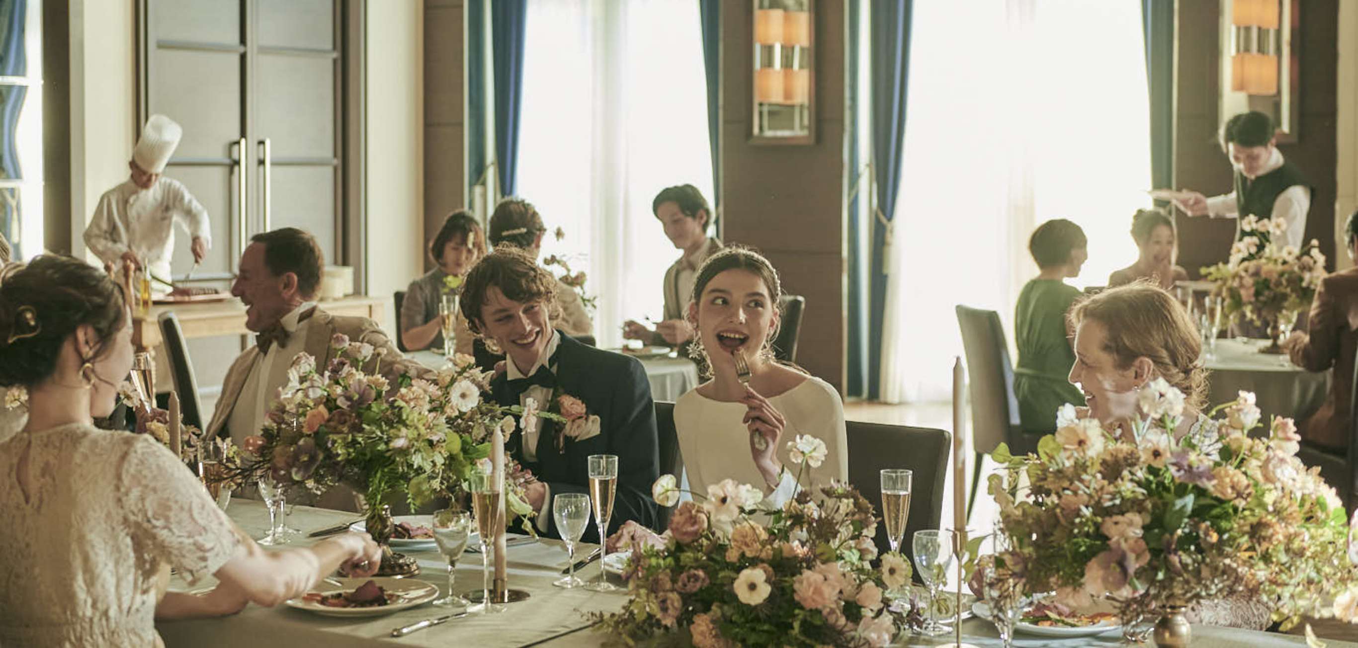 よりアットホームな少人数での会食もゆったりと。披露宴会場のテーブルセッティングは、ゲストの人数にあわせて自由にアレンジできます。広い空間を家族や親族だけで貸切って長テーブルを一緒に囲むスタイルなど、プライベート感あふれる贅沢なひとときをどうぞ。